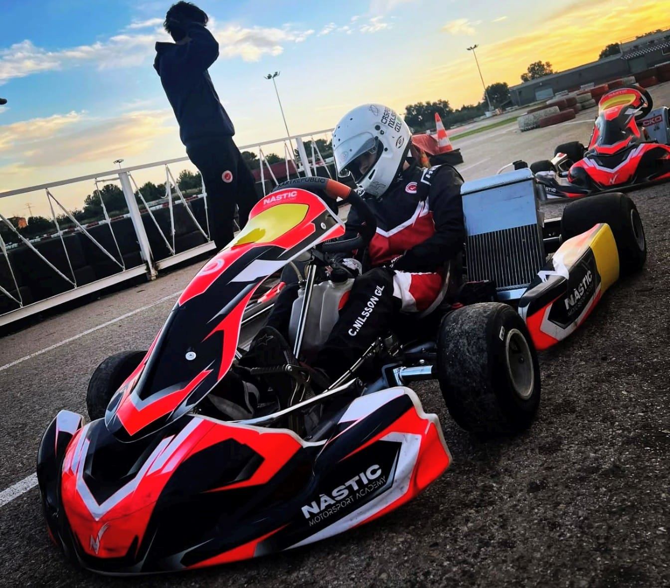 Just nu tävlar han i gokart, men nästa steg är F4, F3, F2 och till slut F1. Vi håller alla tummar och hejar framåt!