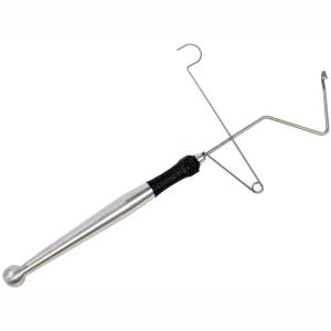 - Hackeltång: En hackeltång är ett verktyg som används för att hålla hackelstrå eller fjädrar på plats medan de binds fast runt flugkroken. Det ger en stabil och kontrollerad grepp om hacklet när det bindes på plats för att skapa den önskade siluetten och rörelsen för flugan.