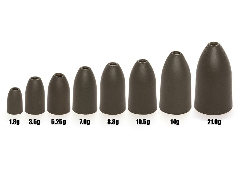 CAMO Tungsten Bullet Weights (GREEN PUMPKIN) är mattmålade sänken i tungsten, perfekta för Texas- och Carolina-riggar. Linföraren är polerad för att förhindra skador på linan även vid långvarig användning.