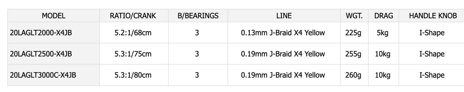 Populära Laguna LT finns som en förspolad med J-Braid X4 Yellow flätad linje.