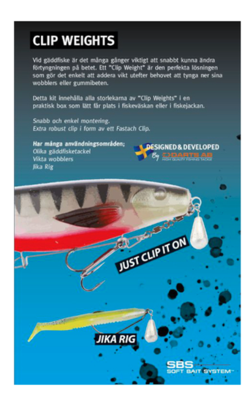 Denna mångsidiga blandning av Clip Weights ger dig flexibiliteten att anpassa ditt bete efter dina specifika fiskebehov. Med Darts kvalitet och mångfald kan du vara säker på att vara redo för alla fiskeutmaningar som kommer din väg.