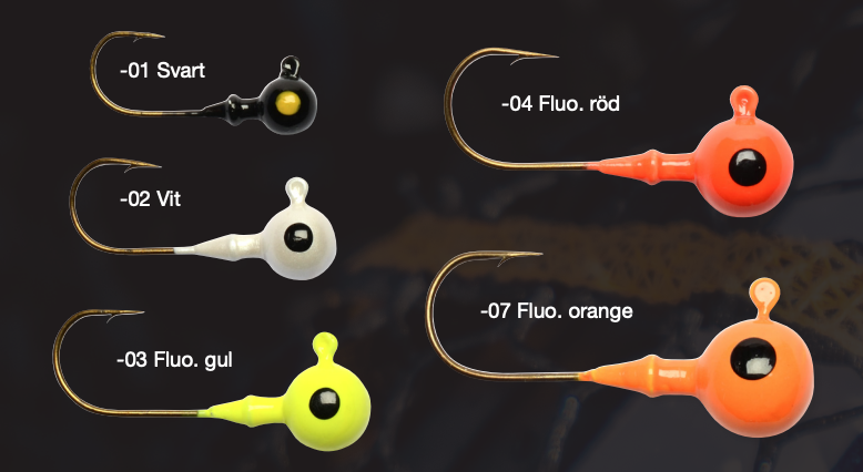 Runt jigghuvud med Aberdeenkrok. Passar till de flesta av våra jiggkroppar. Vi har tillsammans med vår leverantör gjort egna gjutformar till vårt mest populära jigghuvud; det klassiska Curly Head. En ny design som håller fast jiggen och eliminerer att den spricker och trasas sönder.