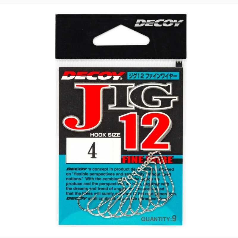Offset-jiggkrok från japanska märket Decoy, modell JIG12 Fine Wire. Utformad för att användas med mjuka beten (softbaits) och som en del i jigging-rig
