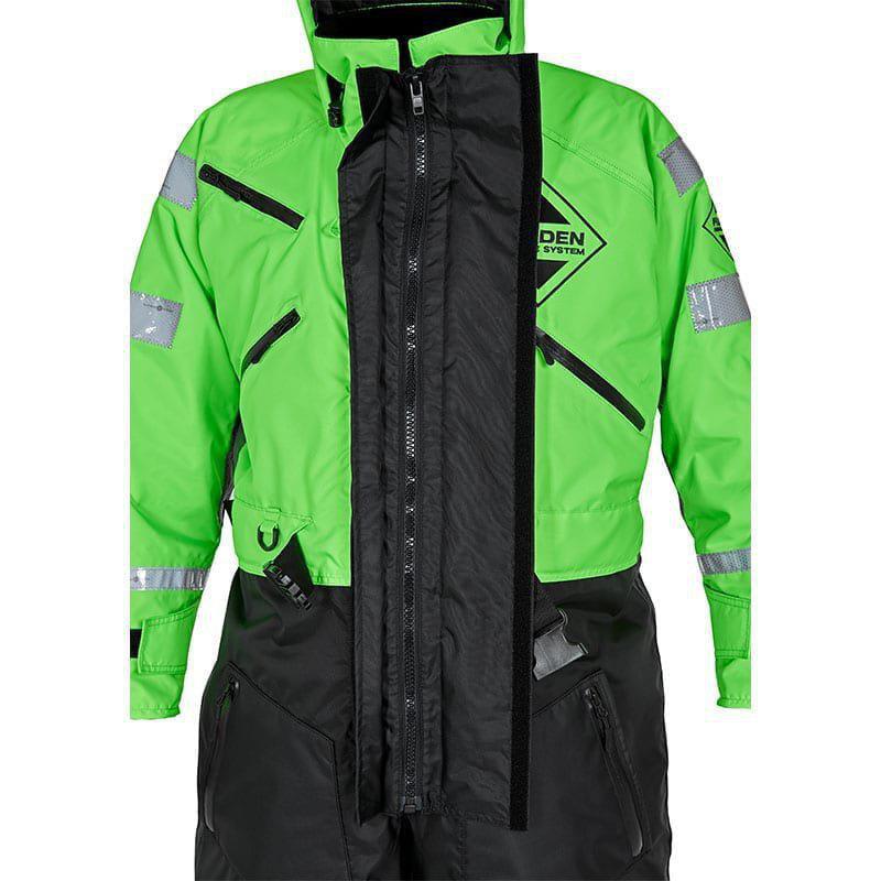 Flytoverall som ärvt massor av egenskaper från våra tidigare modeller och fått många nya tillägg. Bra passform, stor rörlighet, rikligt med reflexer, många fickor - inklusive mobilficka - och mycket därtill. ISO 12402-6 certifierad som Flytoverall ISO 15027-1 certifierad som Sjöräddningsdräkt och uppfyller det termiska skyddet enligt klass D