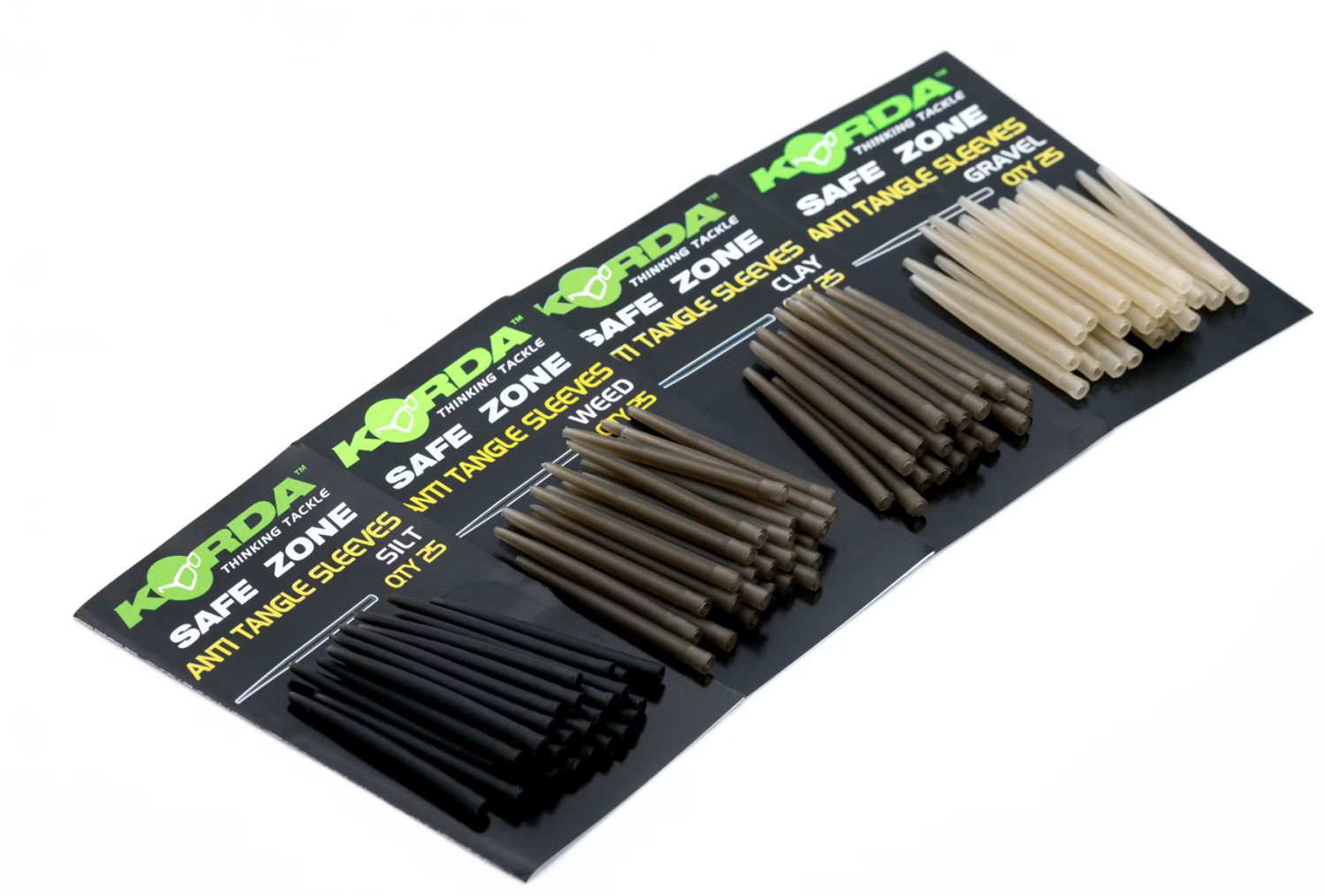 Dessa avsmalnande gummi Anti Tangle Sleeves glider snyggt över ögat på din kroklänksvirvel och hjälper till att minska risken för att din rigg trasslar ihop sig medan den kastas ut. De är tillräckligt mjuka för att enkelt glida över ett vridbart öga, men har också tillräckligt med styvhet för att sparka bort din rigg från din huvudlina – vilket är särskilt användbart när du fiskar med zigriggar. De är också perfekta att använda med våra QC-klämmor (snabbbyte) för att snyggt avsluta riggen och göra det möjligt att byta den snabbt när det behövs. Du kan matcha dem till typen av sjöbädd som du fiskar över, och resten av dina riggkomponenter, eftersom de finns i lera, grus, silt eller ogräsversioner. Paket om 25.