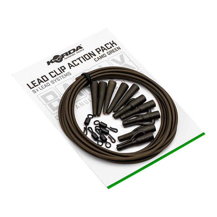 Lead clip-systemet kombinerat med tubing är ett mycket effektivt och trasselfritt sätt att fiska efter karp i olika situationer, och BASIX Lead Clip Action Pack ger dig alla komponenter du behöver för att bygga fem sådana riggar.