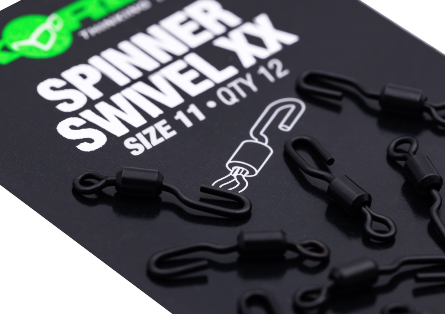 Detta är det perfekta valet för alla som vill ha mindre metallvaror på sina spinnerriggar. Spinner Swivel kommer i storlek 11 och har helt enkelt en krok på ena sidan av den, på vilken ögat på din krok lätt kan placeras och hållas på plats med en Kicker. Den andra änden har ett normalt vridbart öga som en ögla av bommaterial lätt kan krympas till. Detta förenklar allt och gör det mindre påträngande, genom att ta bort en metallring som en del av sviveln.
