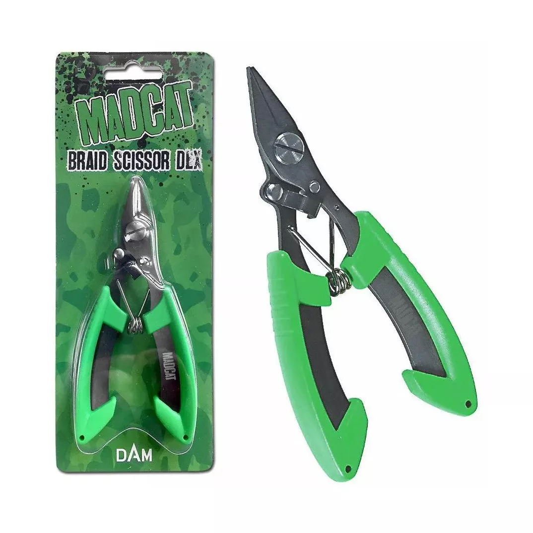 Madcat Braid Scissor DLX är en liten, smidig sax specialgjord för fiske, och framför allt för att klippa flätad fiskelina. Den är designad så att den tar ett rent, snyggt snitt i stark och tunn lina utan att tråda sig — något som vanliga saxar ofta har svårt med.