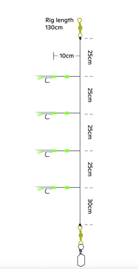 Kinetic Sabiki's Trembler med holografisk fiskhud och flash är den perfekta riggen för dem som jagar sill, makrill eller småfisk i grunt vatten.
