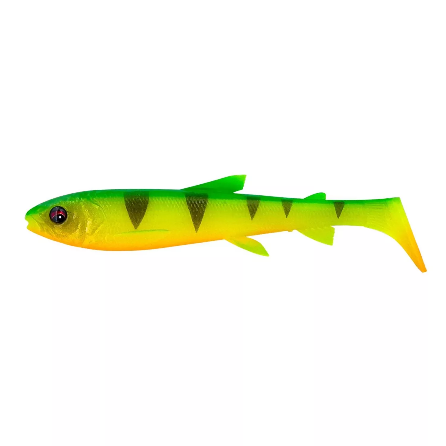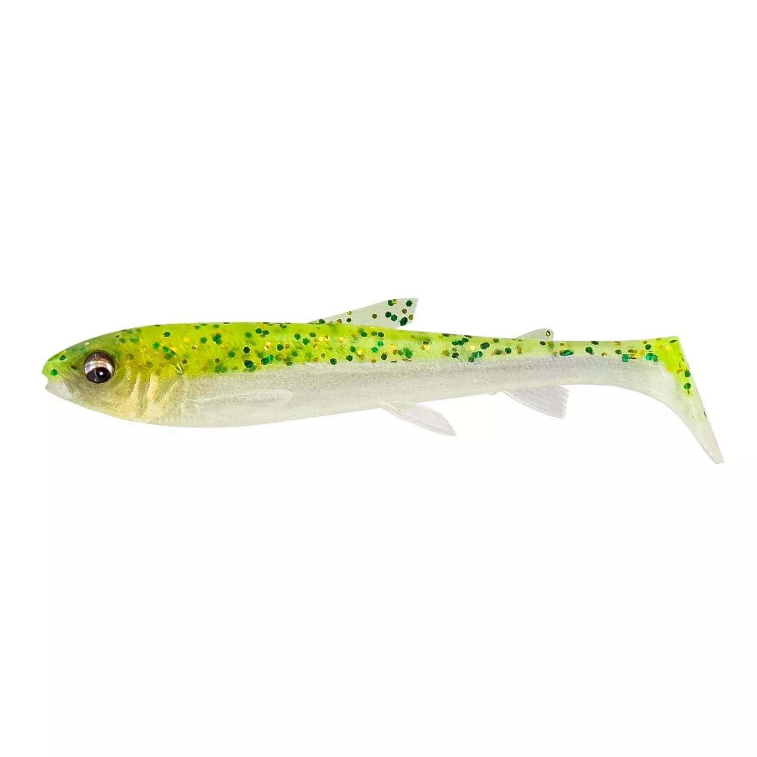 De ledade, realistiska fenorna skapar en subtil sekundär rörelse, medan den stora paddelsvansen ger kraftiga vibrationer som lockar rovfisk på långt håll. Tillverkad i supermjuk PVC med attraktiva färger och en doft som triggar hugg.