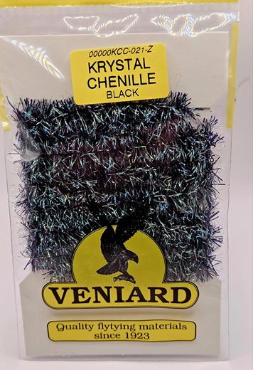 Veniard Krystal Chenille 10 mm ger flugorna ett kraftfullt och iögonfallande utseende. De glittrande fibrerna skapar ljusreflexer och rörelse som syns väl även i grumligt vatten. Ett lättanvänt material som snabbt bygger kroppar med mycket effekt.